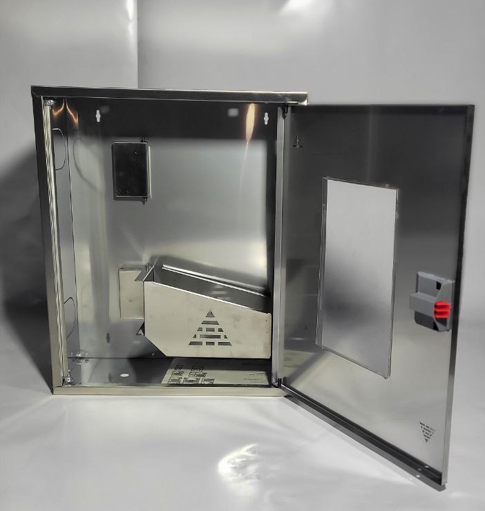 Уникальная конструкция из нержавеющей стали обеспечивает высокую прочность и длительный срок эксплуатации пожарного шкафа.