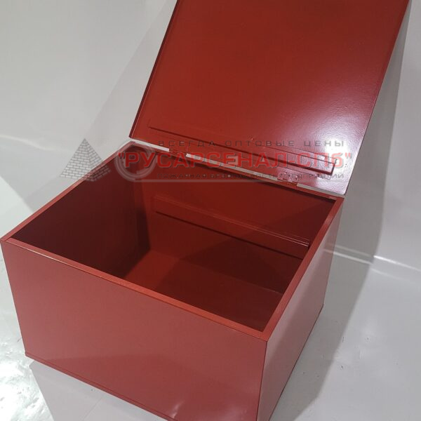 - Изготавливается из листовой стали. Ящик окрашен порошковой краской. Устанавливается на ровную горизонтальную поверхность и засыпается песком.